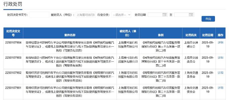 邮报记者Zhao在Wu Junlin报告9月19日,来自上海市运输委员会网站,上海Saike Travel Technology Service Co.,Ltd。(以下简称“上海Saike”)的信息增加了四个新的管理惩罚信息。资料来源:宣布上海市政运输委员会行政法的申请,这表明上海Saike的四项处罚已被罚款。根据Shanghai的市政运输委员会的网站,新闻记者(West Post News Reporter(Wechat ID记者:Haibaonewsw)已经注意到,自今年9月,上海Saike自今年9月以来,已更新了14个行政罚款信息,分别罚款30,000元和420,000元人民币。制裁包括上海市政运输委员会,上海清普地区的运输委员会和上海Ongjiang区的运输委员会。从惩罚的角度来看阿森(Asons),其中九个是第35条第1款违反了在线出租车服务管理的临时措施(1)。提供服务的车辆没有提供“在线出租车运输证书”。驾驶员服务第35条第1条第1条第35条违反了五人。没有“互联网上出租车司机”或在线提供服务的司机与他们离线提供的司机不一致。上海Saike将于9月19日被罚款。根据“在线出租车储备服务的管理临时措施”的第35条,如果出租车平台公司违反了这项规定,出租车管理部门和高于该县的价格部门将命令违法行为以纠正违规行为,并且将不再收到5,000元的违规行为。如果情况很严重,则罚款不到10,000元人民币,将被罚款不到30,000元人民币。此外,该措施的第35条认为,如果在线平台公司不再能够提供在线和关闭服务或进行严重的非法活动,则出租车管理部门处于县级或更高级别或更高的命令并纠正相关许可,并将根据相关法律和法规的相关规定撤销。我在这里。根据蒂安扬(Tianyan)的正式检查,自2022年1月以来,上海赛克(Saike)施加的全部行政制裁超过了300万元人民币。资料来源:Tianyancha上海Saike Travel Technology Service Co.,Ltd。成立于2018年,是SAIC集团下的Xiangdao旅行社。 2018年12月,江道旅行正式推出,并标志着SAIC集团在线汽车市场的正式入口。这家Junio,上海Saike Travel Technology Service Co.,Ltd。经历了工业和商业变化。注册资本从大约34.3亿元人民币增加到大约41.16亿元人民币,增长约20%。工业和商业变化后,上海Saike的股东人数增加到9个,其中Changzo Saike拥有67,1359%的股份,成为最大的股东。同时,该公司的一些高级管理人员发生了变化。