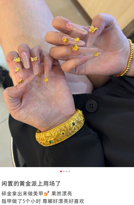 “我拿到了年终奖,所以我决定自己做999金指甲油。” “单独使用 10 克”。 “El oro extra fue muy útil”。随着农历新年的临近,黄金消费的热度日益高涨。 “小可钟”成为很多人过年的热门选择。去年流行金色手机贴、红包、金钞,今年金色指甲油脱颖而出,成为年轻人追捧的新年消费趋势。日刊经济新闻记者(以下简称日刊经济新闻记者)发现,周大福等大品牌的小金饰品和老字号金店的金条,被用作美甲沙龙的“奢侈原料”。有消费者表示愿意花数千甚至上万元制作“克拉夫”,社交媒体称,这种“指尖消费”的小众,体现了黄金中的冰与火两个世界。珠宝行业。尽管2025年以来国际金价持续上涨,但黄金珠宝上市公司业绩普遍承压。周大福2026财年中期销售额较上年下降1.1%,创近五年同期最低水平。财务报告期内关闭了 611 家门店。周大福2025年前三季度营收同比下降37.35%,终端门店数量较2024年同期减少560家。其他众多金饰品牌也尝试提价、IP联名、线上等举措,均取得成功。利哈夫。 “指甲油有望为黄金作为‘美容消耗品’开辟一条新的出口途径,让黄金首饰从‘少客多单’转变为‘高频少客单’,解决行业困境。”詹氏品牌专家、创始合伙人庞锐表示。恒通通讯告诉记者。然而,一些消费者质疑其成本低、易丢失、不可回收等问题。为什么金色指甲油产品突然从婚礼柜台扩散到美甲沙龙?而它的受欢迎程度又能走多远呢?能否激发资本市场信心?在调查过程中,记者发现流行的“彩色指甲油”潜藏着危险。一些美甲师声称未使用的黄金废料可以回收利用。对此,北京中闻律师事务所律师郑阳表示,未经央行许可,回收金银属于违法行为。 2026年春节前夕,林悦(化名)请美甲师用6克多的黄金首饰装饰她的指甲。她向记者展示了自己的美甲。 “这个‘金钉子’是黄金做的,市场价接近万元,这些都是我以前戴的耳环和项链,现在不怎么戴了。”把它们涂在指甲上花了1200元。我的朋友说他们看起来不错。我觉得黄金比买金项链、金手链更有仪式感。”记者每次走访北京、成都等地的高端美甲店都发现,现在美甲店市场火爆,很多店都忙到晚上或凌晨。除了中国红等款式,今年越来越多的人像林跃一样用999纯金装饰手指。“这些天,我十点上班,要到凌晨才能完成工作。有些款式需要六个小时。这就是为什么我在年底停止接受订单的原因。 “最快24号就能发货。”在一家美甲店工作了四年的程丽(化名)告诉记者,她店里找“金美甲”的顾客很多,最近这类美甲的询问明显增多。每次记者以消费者身份询问时,D店的工作人员都在询问。成都一家高端美甲公司uan Nail Salon给她发来了顾客涂金色指甲油的真实照片和视频。顾客带来了价值4万元的金饰,请美甲店切割制作。他们的加工费为1360元。考虑到目前金价较高,大多数美甲店都要求顾客携带黄金饰品到店进行加工。 “处理起来并不难,它就像任何其他装饰品一样。重要的是它是否牢固地粘住。醋。它可以持续大约一个月,但如果它脱落,我们不负责。”美甲师告诉记者。 “黄金首饰可以很容易地拆卸和切割,但有些项链和耳环需要到黄金专卖店专门分开才能带去美甲。”采访中,多位美甲师告诉记者,顾客带来的金饰大多是老庙的金花耳环、中国的金蝴蝶花项链等知名品牌。在一个整数中记者了解到,除了拆解现有的美甲金饰品外,人们还涌入深圳金水贝杂货店购买轻手镯、饰品、耳环等作为美甲“消耗品”。黄金成为一种“触手可及的社交货币”,可以让你瞬间将情绪转化为现金。 2025年为257.6亿美元,2032年为362.6亿美元,预测期内复合年增长率为5.01%。在北京拥有十几家门店的LILY NAILS品牌创始人兼CEO张文涛注意到,春节前后美甲消费逻辑发生了微妙的转变。他告诉记者,旺季一般集中在农历新年前10天,而且收入也比较多。 “每个人都想在节日期间展现自己最好的一面。”在他看来,在指甲油中添加黄金并不完全是一个涉及保价和保值的“计算问题”。 “那一万元美甲蕴藏着抢眼的元素,但总是需要高端定制。黄金仅作为设计元素。” 图片来自社交网络。“目前,消费者购买1至2000元的金饰,但觉得戴起来有点困难,但把它们变成指甲油很有吸引力。”某著名黄金珠宝品牌代表告诉记者,与老一辈积攒黄金来管理家庭财务的消费逻辑不同,比如“买一根金条,就买三块金”,年轻人人们对黄金的预期集中在“消费”上。乐趣”。得物数据显示,2026年以来,平台上有情感价值的黄金商品GMV(商品总额)同比增长300%。黄金的属性正在从“长期保值”向“即时表达”转变。根据“FORTE BUSINESS INSIGHT”研究报告,社交媒体渠道提高了人们对最新趋势的认识美甲艺术的魅力,例如独特的设计和色调。不同国家的消费者都在尝试模仿名人和社交媒体上的指甲油,以提高产品销量。全体记者还注意到,在小红书等平台上,关于金指甲油的讨论更多地与审美、仪式和社交展示有关,而不是重量和盛衰。 “顾客更看重黄金的稀有性和象征意义,而不是其当前的价值。”张文涛说。在比较价格时,这种变化尤其明显。以3克黄金为例,截至2月13日,中国银行投资金条市场价格为每克1114.21元,总价值约3343元。将同样重量的指甲油分成几份,嵌入指甲油中,总成本通常超过5000元。保险费并不便宜,但仍有一些人愿意支付。根据 el precio del oro 网