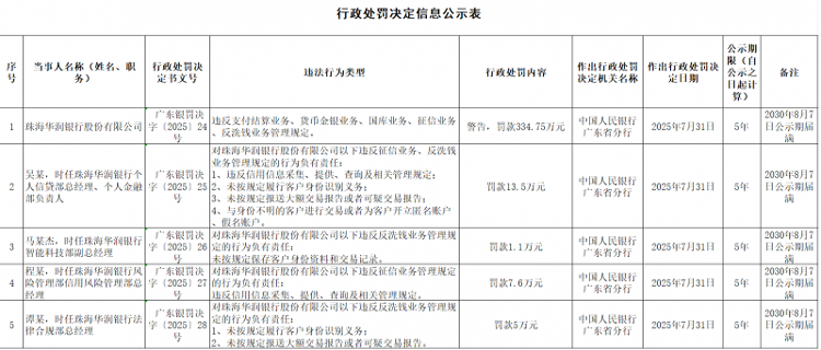 新闻海报Zhou Lingfeng的记者最近,《中国资源银行有限公司》(王海港(Wang Haozheng)报告报告(以下简称“中国的资源银行”)被中国广东银行(Gran Guangdong Bank of Chine Chund)银行在中国广东银行(Gran Guangdong Bank Bank of China)在六份非法活动和罚款3,3475亿YUAN上警告。这四人也将被罚款,罚款从11,000至135,000元不等。根据罚款,中国资源银行涉及的六项非法活动违反了有关付款和清算公司,货币和黄金业务,金融业务,信用报告和针对洗钱的公司的行政法规。具体来说,吴是当时的个人信用部门的总经理,也是中国Zhuhai中国资源银行的个人理财部门负责人,负责收集,提供,研究和Violabank相关管理。他不遵守客户的身份义务协议对法规。根据法规,不能提交大型或可疑的交易报告。它被135,000元人民币罚款,负责与身份不明的客户打交道,并为他们开设一个匿名或伪指定帐户。朱海中国资源银行信贷风险管理部门总经理郑穆(Cheng Mou)因负责收集,提供,提供,咨询和违反银行的信用信息并违反相关管理法规而被罚款76,000元人民币。中国珠海资源银行法律合规部总经理谭(Tan)负责不履行其客户ID义务,并根据法规未呈现大量交易的报告,并因符合该法规的大规模交易而被罚款50,000 Ewans。 Ma Moujie,Zhuhai中国资源银行智能技术部总经理的助理,接收由于缺乏必要的客户身份信息和交易记录,因此罚款11,000元。这位记者说,自2019年以来2024年,我们注意到中国朱海的资源银行经常受到监管制裁。 2024年5月22日,该州政府的Zhuhai监管部门被罚款700万元,以严重违反金融市场规则,并严格赎回机构资产管理计划,从而破坏了投资者的利益。这也是银行自成立以来收到的最大个人票。 2024年7月23日,监管省级管理局的深圳监管办公室透露,朱达中国资源银行的深圳分支机构被没收了352,500元的非法收入,并以200万年的价格罚款200万年,并使用对吸收药物的平均造成药物的损害,并罚款200万年。制裁20024年7月,外汇省政府广东省发表的信息显示,中国的资源银行因处理违反法规的货币和解和货币销售公司而被罚款110万元,并且无法合理地考虑货币文档的接受及其真实性和真实性。据了解,中国资源银行的总部位于以前称为Zhuhai商业银行的朱海市,然后在2011年被中国资源资源集团收购后被更名。