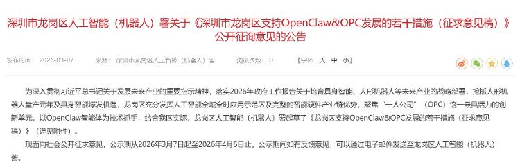 中新经纬3月10日电 “蝗虫养殖”是时下人工智能界的一个热词:一个名为OpenClaw的开源人工智能代理框架的实现和使用。它被称为“龙虾孵化场”,因为其图标是红龙虾。深圳是这股热潮的“第一城”。深圳:《十只龙虾》首映。 3月6日,深圳腾讯科技大厦门口排起了长长的“龙虾”队伍。同日,深圳福田推出AI数智员工2.0,引领引入“政蝗”智能座席,助力基层减负、提升效率。 3月7日,深圳市龙岗区主动公布“十大蝗虫”即《龙岗区支持OpenClaw OPC发展的多项措施(回馈工程)》,成为全国第一个以政策ifstemmatics回应OpenClaw生态的地区。来源:深圳龙岗在线官网 亲提出鼓励市场化专业平台运营商建立“蝗虫服务区”,免费提供OpenClaw实施服务,并对符合条件的企业给予一定补贴。我们为OpenClaw等代理工具的开发和推广提供支持。向国际提供关键代码、开发龙岗优势产业相关技能包并在技能交易平台发布、开发与嵌入式智能设备结合的应用项目的,经身份验证后,将获得最高200万元的补贴。当您购买数据治理、注释和数据资产摄取等服务用于与 OpenClaw 框架相关的开发、应用和研究时,您将根据实际支付的费率获得 50% 的折扣。如果您购买本公司自主研发并准备使用的AI NAS(龙虾盒),我们将为您提供市价30%的补贴。 OpenClaw数字员工申请券计划将开展,帮助企业购买或创建自己的OpenClaw智能解决方案。补贴不超过项目总投资的40%,每家企业每年最高200万元。对符合条件的地区AIGC企业,采用国产大型多式联运车型创建和生产AIGC的,按实际车型调用费率的30%给予补贴。每家企业每年累计补贴总额不超过100万元。同时,每年评选出一大批创新性强、应用效果好的OpenClaw综合应用项目,重点关注智能制造、智慧政务、智慧园区、智慧医疗等领域,被授予“龙岗区OpenClaw应用示范项目”称号,一次性奖励实际投资金额的30%,最高可达100万元。江苏:无锡高新区、常熟跟进。毗邻深圳龙岗的是江苏无锡高新区。 3月9日,无锡高新区公布了《支持OpenClaw等开源社区项目与OPC社区融合发展的多项措施(征求意见稿)》,即“龙虾养殖12条秘诀”,从基础支持到产业引进,从人才招聘到安全合规,并推出个人支持最高500万元的真金白银分红包。 。来源:微信公众号“无锡发布” 上述政策建议为免费提供开发和部署工具包的本地云平台提供最好的服务。全额补贴最高可达100万元。对区内使用智能算力平台的OPC项目,根据实际成本,每家企业每年最高可享受30万元的补贴。对数据集开发中的数据标注服务,最高补贴50万元。这OpenClaw相关开发购买数据最高补贴为10万元。对基于OpenClaw开发工业质量检测、设备预测维护等大型垂直模型并通过国家注册的项目,给予50万元奖励。对内置智能机器人、智能质检等重大技术突破给予最高500万元支持。 “人工智能+制造”鼓励建立开源协作实验室,对主导开源框架和行业标准制定的给予最高100万元奖励。每年开展典型场景应用评选,入选示范项目将获得公司相关技术和产品采购价20%的补贴,最高可达200万元。当天下午,常熟市在微信公众号“i常熟”发布《常熟市加快OpenClaw等开源社区建设促进产业高质量发展的若干措施(征求意见稿)》,并启动13项措施。来源:微信公众号“i常熟” 在初期技术开发和服务支持方面,政策提出为OpenClaw用户提供全程免费实施实施服务和技能培训服务,鼓励专业化、市场化平台参与,对服务记录优良、符合认证条件的平台机构给予最高300万元专项补贴。在资源供给层面,常熟市将建立智能计算资源调整机制,对新设立的OpenClaw应用提供计算资源补贴和相关基础技术支持服务知名 OPC 社区中的化和开发相关公司。利用人工智能专项基金,我们将为人力资源提供充足的支持,以使用“OpenClaw”工具建立ecer OPC。常熟重点在嵌入式智能、纺织服装、直播电商、文创设计等特色领域建设OPC社区。每年我们都会评选出行业领先的OPC示范社区,为建设企业提供最高200万元的补贴。安徽省合肥高新区:最高1000万元财政支持。 3月10日,微信“合肥高新发布”账号发布消息称,3月6日,高新区正式公布了《合肥高新区创建人工智能OPC创业生态示范区行动方案(征求意见稿)》,全力陪伴OpenClaw等开源AI项目落地。出台15项举措 来源:“合肥高新发布”微信公众号 前沿 由于AI研发中算力和数据成本较高,该政策提供“算力券、语料券、模型券”三重礼包。 OpenClaw等项目最高可申请1000万元算力优惠券、100万元语料优惠券、200万元模型优惠券。 I+D 过程的子任务,包括模型的形成、代理的创建、语料库的查询和注释。同时,园区对教育、医疗、制造、智慧城市、社会治理等场景完全开放,优先接入OpenClaw。被评定为标杆示范的应用项目将获得最高100万元的专项补贴,用于推广研究院的“龙虾”智能体技术。向应用领域转移,加快科技信息化取得重大成就,形成封闭的商业循环。此外,园区人工智能专项基金将20%以上资金投资于高成长的OPC企业,与金融机构合作推出OPC专用信贷产品,提供知识产权担保、信用贷款等多种金融服务,同时还给予高达50%的贷款贴息补贴。高层次人才创办的AI-OPC公司还可享受阶段性最高1000万元种子融资。 (经纬中新APP)