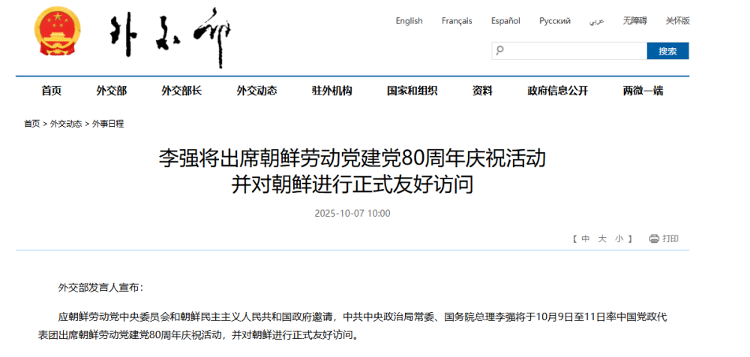 李强将出席韩国劳动党成立80周年庆祝活动并对朝鲜进行正式访问